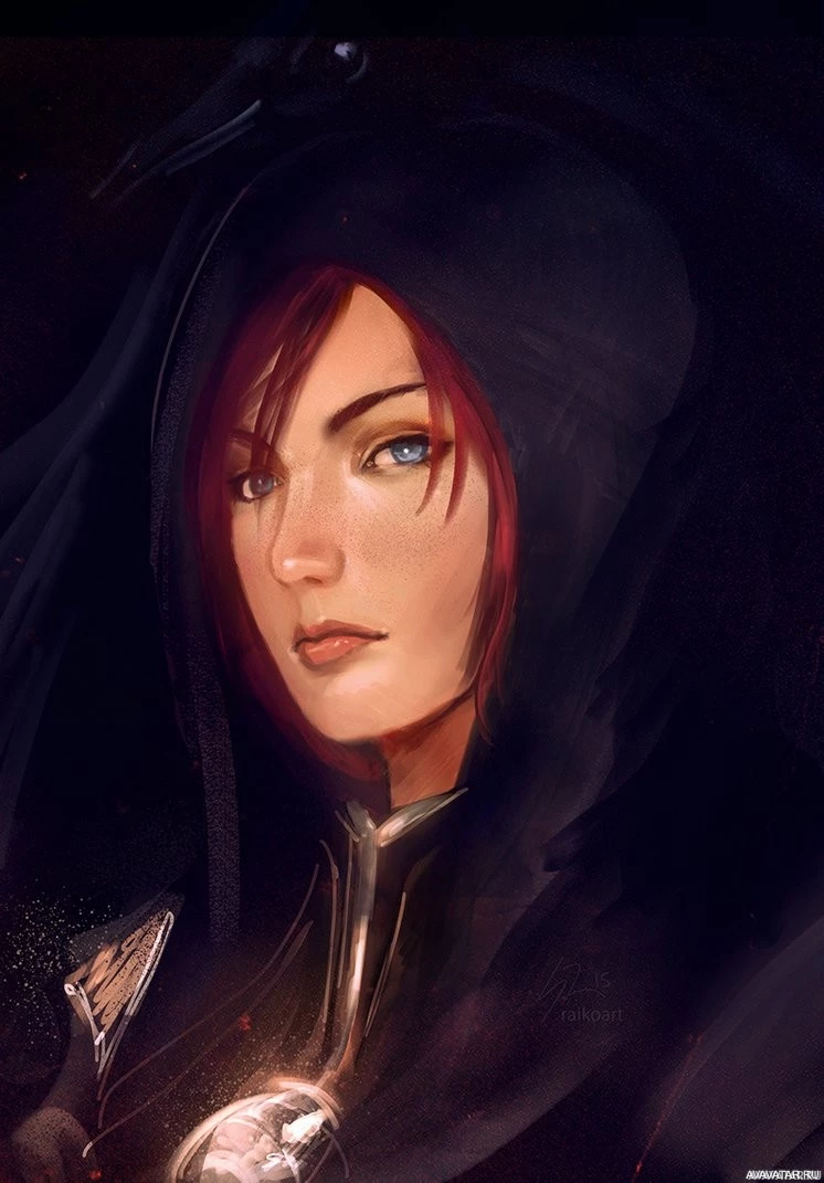 На картинке изображена женщина с рыжими волосами и в плаще. У нее серьезное выражение лица, и на левой стороне груди, похоже, есть какая-то эмблема или знаки отличия. Фон довольно темный, что контрастирует с ее более светлым тоном кожи, подчеркивая ее присутствие.