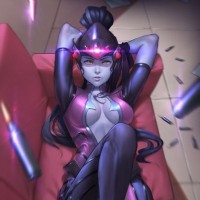 the video game Overwatch. This is Widowmaker, known for her purple and black outfit, which consists of skin-tight clothing with thigh-