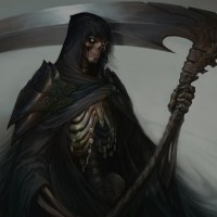 The image depicts a character that appears to be an embodiment of Death, often referred to as