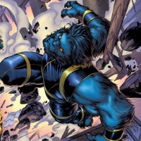 animalistic form. On the right, there is another character, who appears to be the X-Man known for his