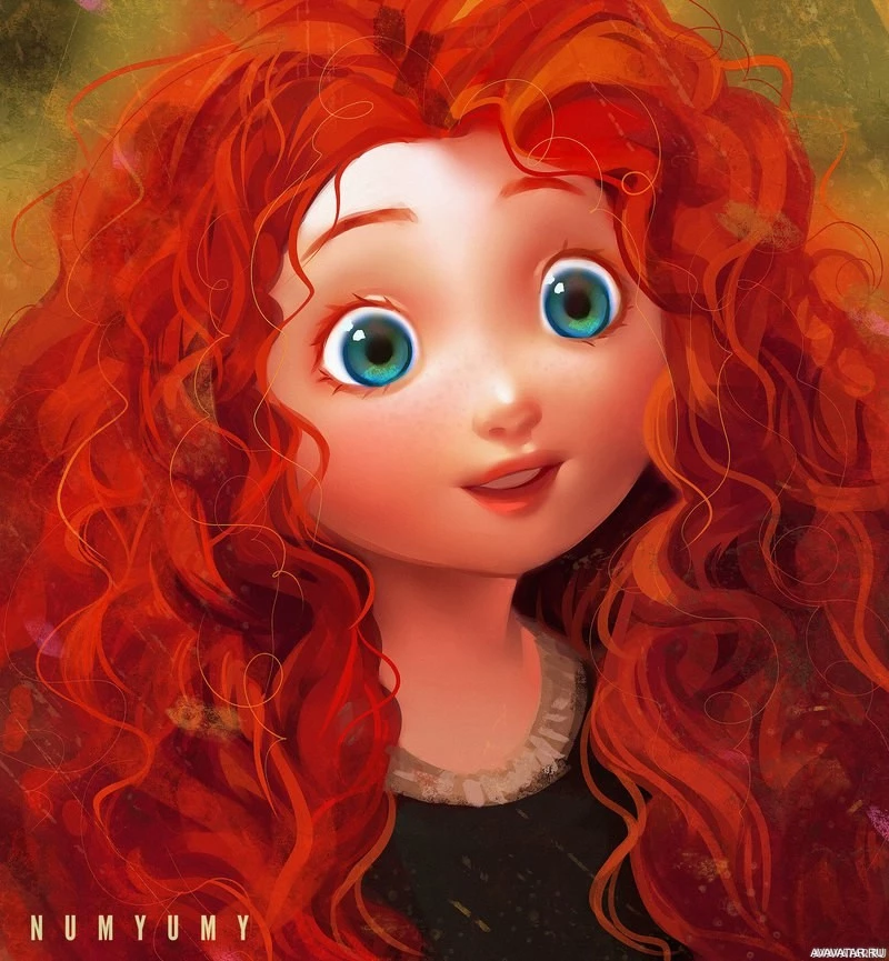 Это изображение персонажа по имени Мерида из мультфильма «Храбрый». Персонаж известен своими рыжими вьющимися волосами и является частью семьи Disney Pixar.