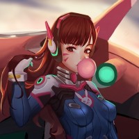 На картинке изображен иллюстрированный персонаж, который выглядит как D.Va из видеоигры «Overwatch». Она носит роботизированный костюм и имеет уверенное выражение лица, с рукой на бедре. На заднем плане есть футуристические транспортные средства, которые, кажется, соответствуют эстетике настройки игры. Стиль изображения предполагает, что это может быть фан-арт или рекламный материал для игры.