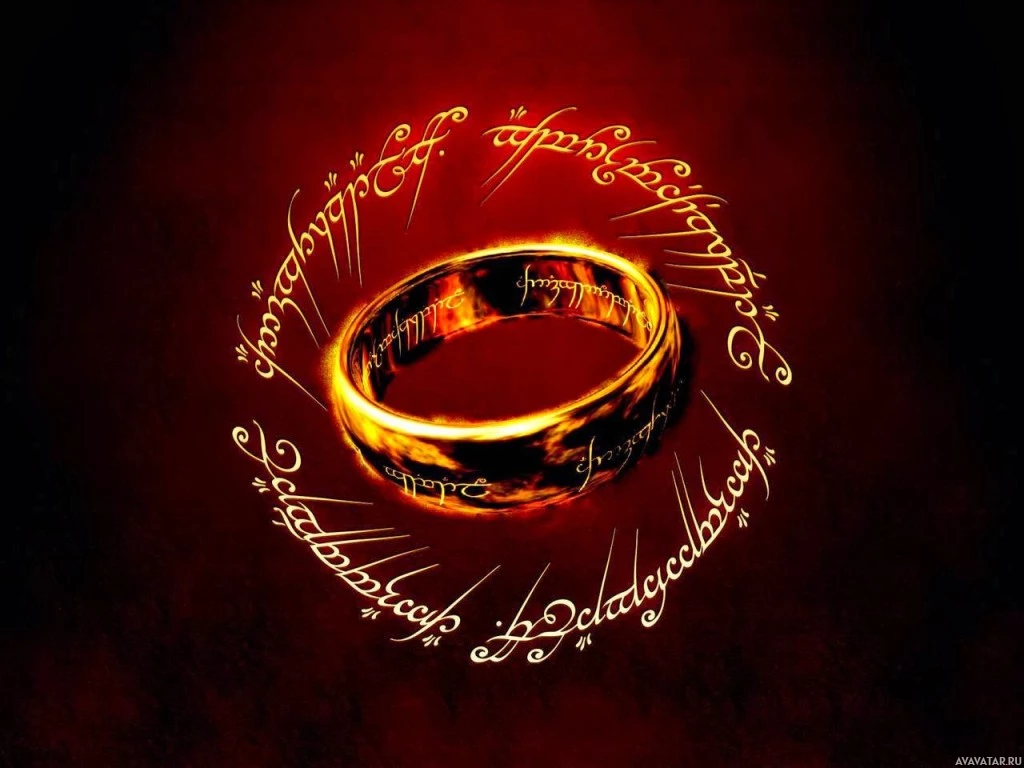 The image features the One Ring from the "Lord of the Rings" movies. It's set against