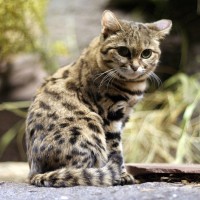 The image shows a spotted cat, commonly known as the cheetah, in what appears to be a natural setting with vegetation and rocks. The cheetah is sitting on a rock with its head turned towards something off-camera, giving an impression of curiosity or alertness.