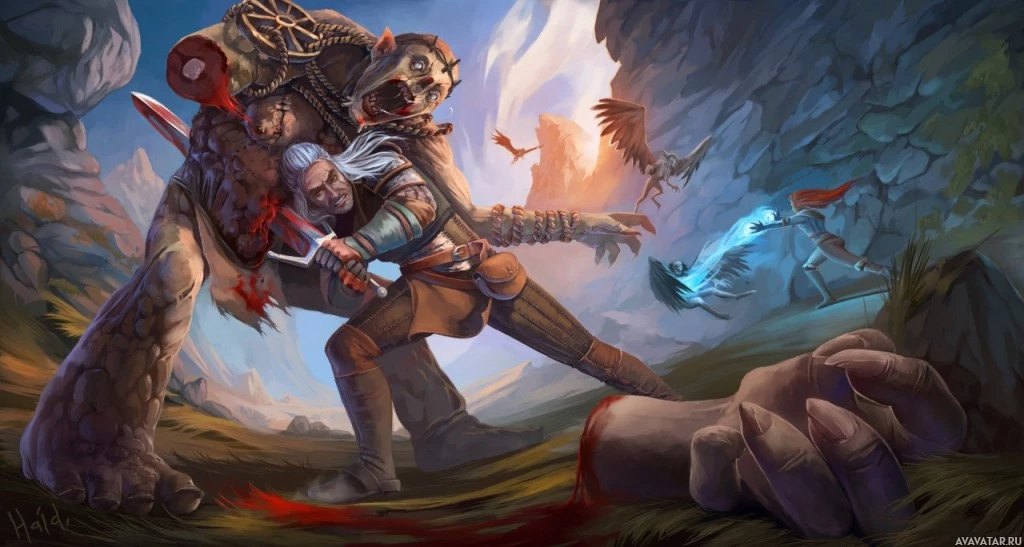 The image depicts a character that appears to be Geralt from