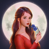 a blue flower. The overall scene suggests a serene and romantic atmosphere, possibly associated with themes of beauty, tranquility, and the allure of nature during