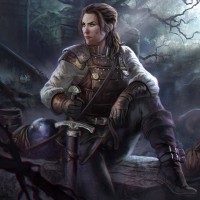 The image depicts a character who appears to be from a fantasy or role-playing game. She is wearing armor and carrying a sword, suggesting she may be a warrior or adventurer of some sort. Her attire and weapons indicate that she might be engaged in combat or exploration within the context of her story. The environment around her looks like it could be