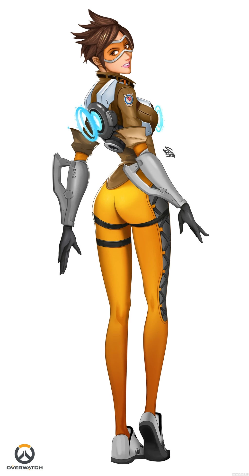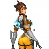 the video game Overwatch. The character is Tracer, known for her high-speed abilities and
