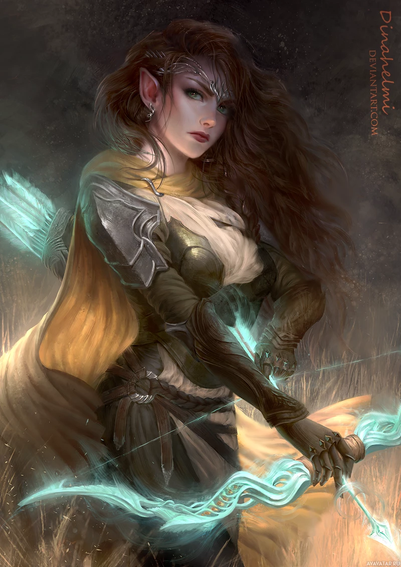 an elf archer. The character is holding a bow and arrows, suggesting that she is
