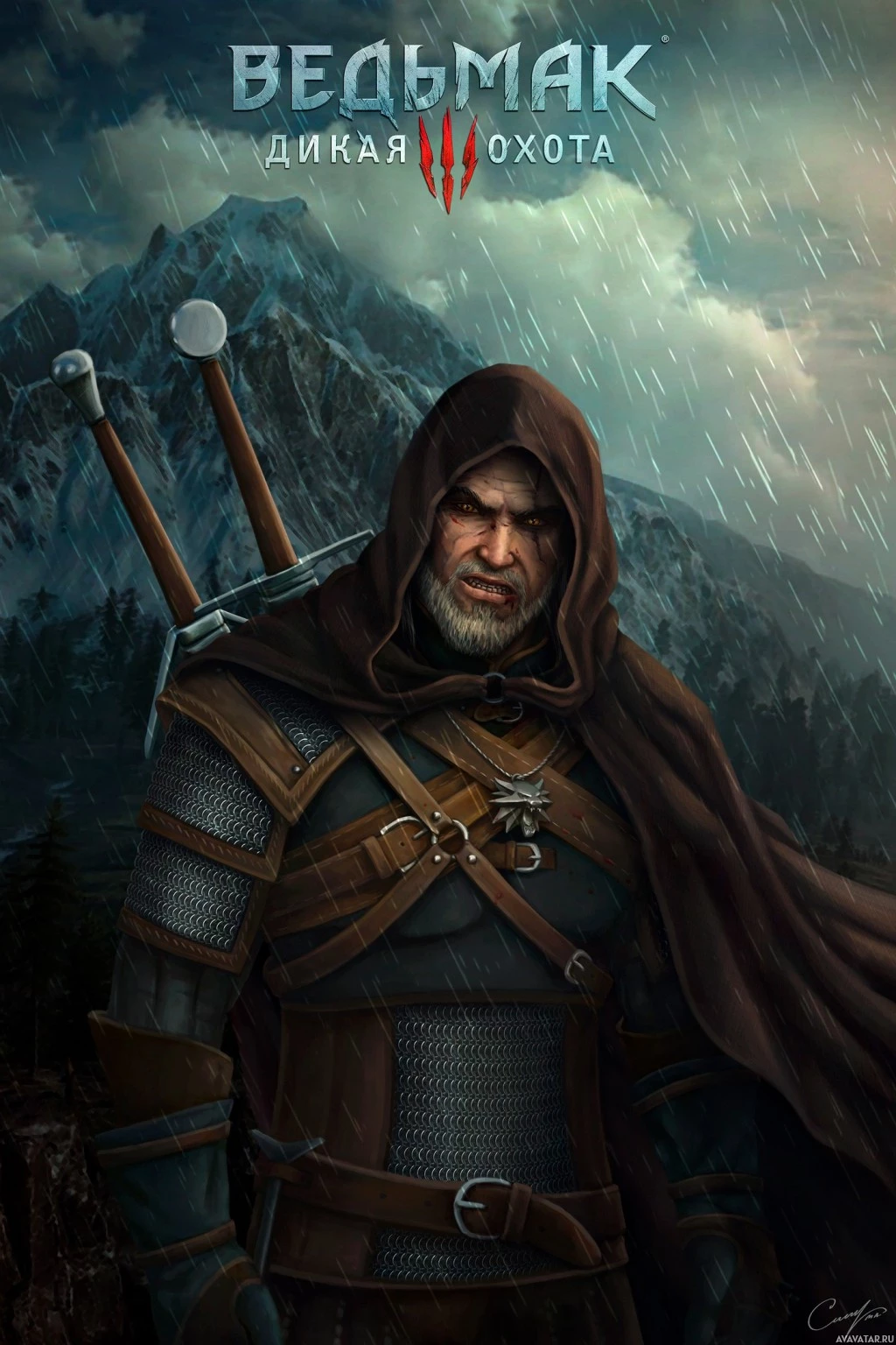 the video game series "The Witcher." He is dressed in