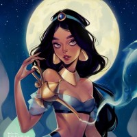 an animated character resembling Jasmine from a well-known animated movie. She is standing against the backdrop of