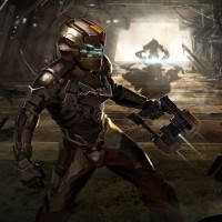the video game "Dead Space." This character is depicted with a suit of power armor, which includes a helmet and various pieces of