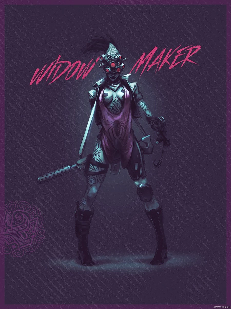 text at the top of the image that reads "Widowmaker," indicating her name within the game.