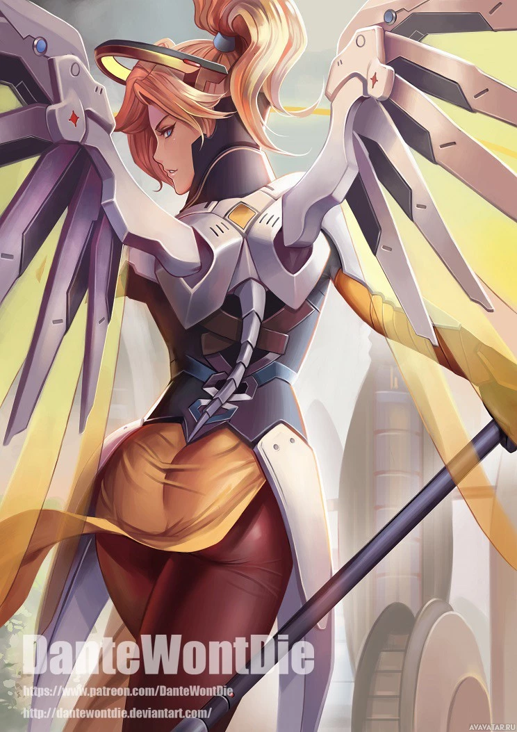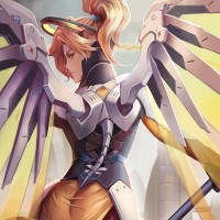 signature armor with wings on either side of her back, suggesting she has some sort of angelic or mystical theme associated with her abilities within the game.