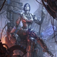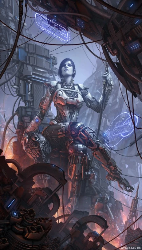 advanced technology or artificial intelligence. The robot is set against a backdrop of what looks like an industrial or damaged environment, possibly indicating conflict or rebellion against a more conventional society. The overall theme of the image aligns with the science