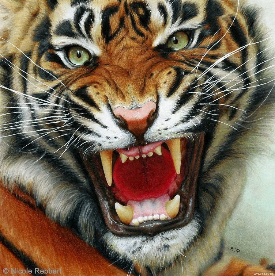 This picture features an artistic representation of a tiger. It appears to be a painting or illustration, showcasing the close-up