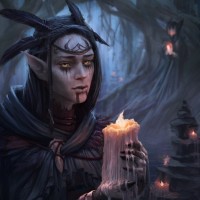 fantasy lore, and is holding a candle. They are dressed in what appears to be