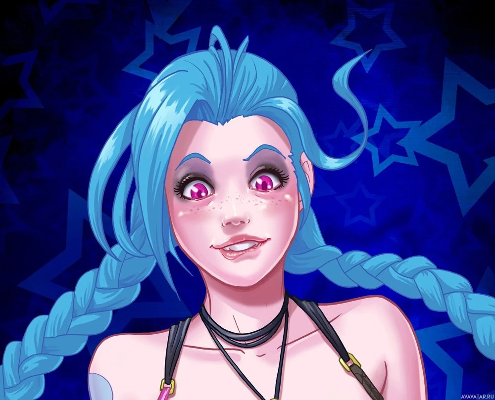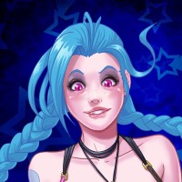 blue hair and is wearing what looks like a black top with straps, possibly indicating a fantasy or superhero style outfit. The background features stars, which adds to the fantastical theme often associated with the game's artwork.