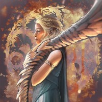 intricate patterns and what appears to be flames or embers, adding intensity to the scene. The artwork captures