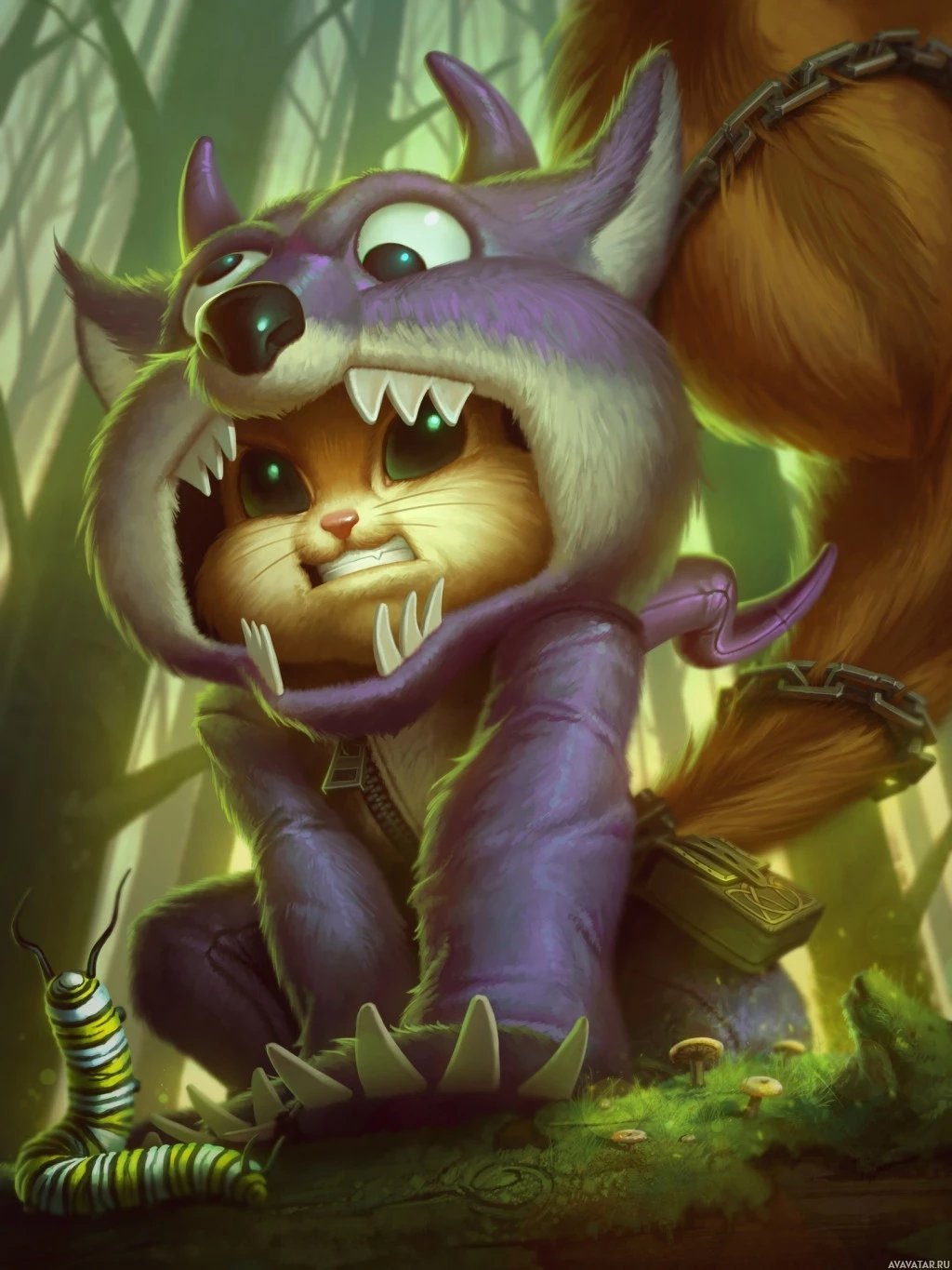 wooded area, with misty trees and foliage contributing to the whimsical and adventurous atmosphere of the image. The overall feel of the picture suggests a playful and imaginative theme often found in fantasy artwork featuring anthropomorphic animals.