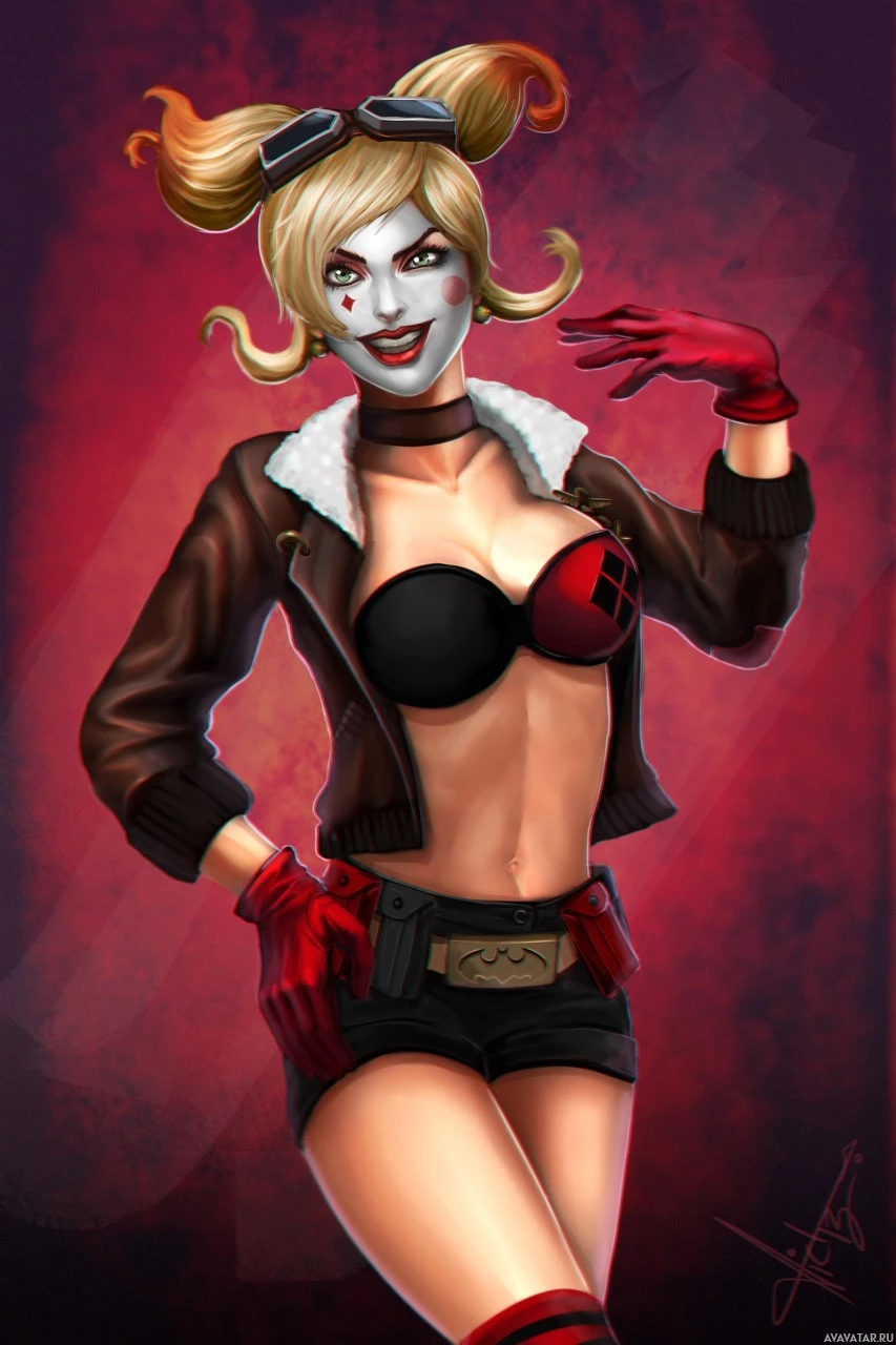 Harley Quinn, a popular character from the comic book series "Batman". She is wearing her