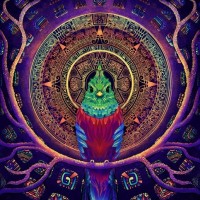 The image features a vibrant and colorful artwork with psychedelic influences. At
