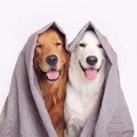 golden coat, while the one on the right is predominantly white. The image does not contain any people or humans.