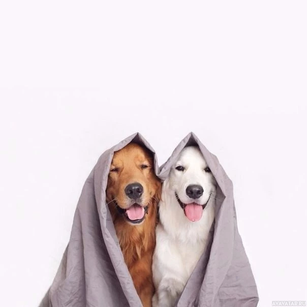 a Golden Retriever. They are sitting closely together with their heads peeking out from