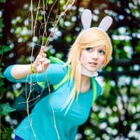 The image shows a person dressed in costume as Finn the Human, a character from the animated television series "