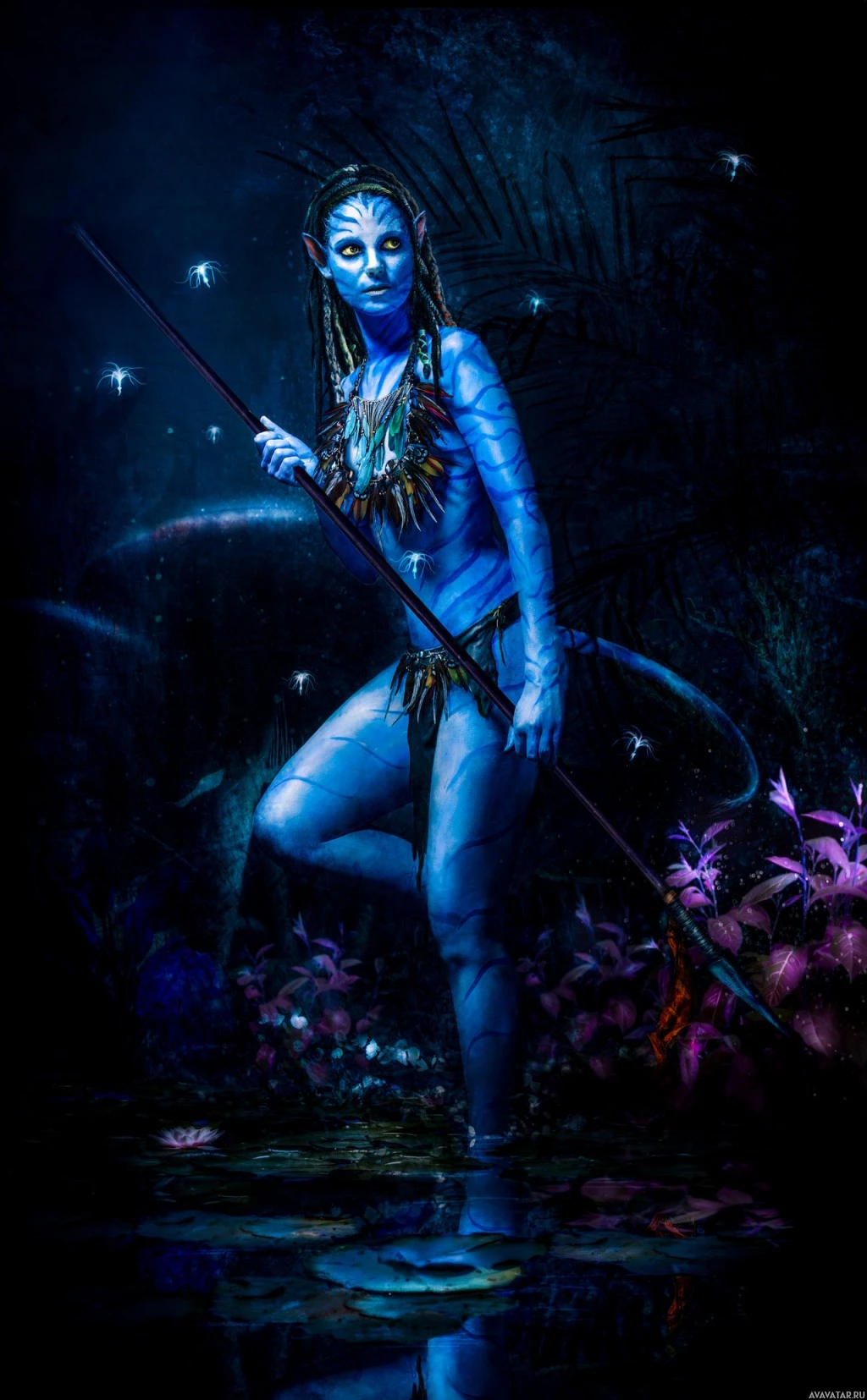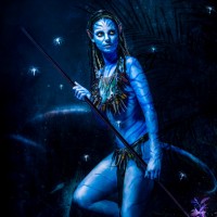 blue skin, which is characteristic of certain characters in the Avatar universe. The setting appears to be