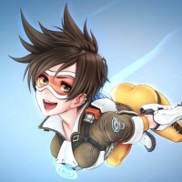 The image depicts an animated character known as Tracer from