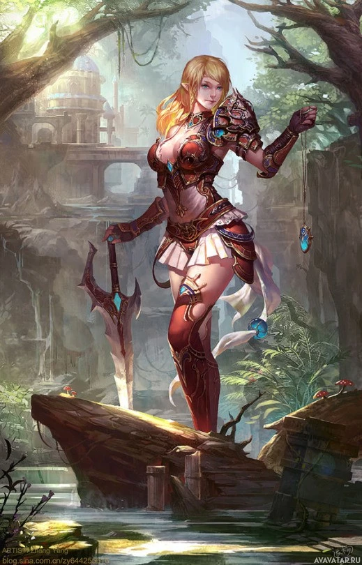 The image shows a fantasy-themed character, who appears to be an elf. She is depicted in