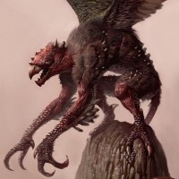 a fantasy monster. It appears to be a creature with the upper body of a bird, complete with wings and feathers, combined with the lower