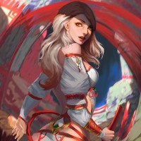a female character, who appears to be a fantasy or video game-style figure. She has