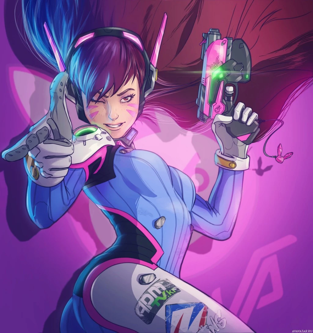 a character from the game "Overwatch." This character is known as D.Va, who is depicted in her