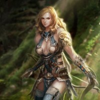 a female character dressed in what appears to be armor or battle gear, suggesting she might be from a fantasy setting. She has