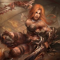 a female character in what appears to be fantasy attire, possibly a warrior or warlock type. She has