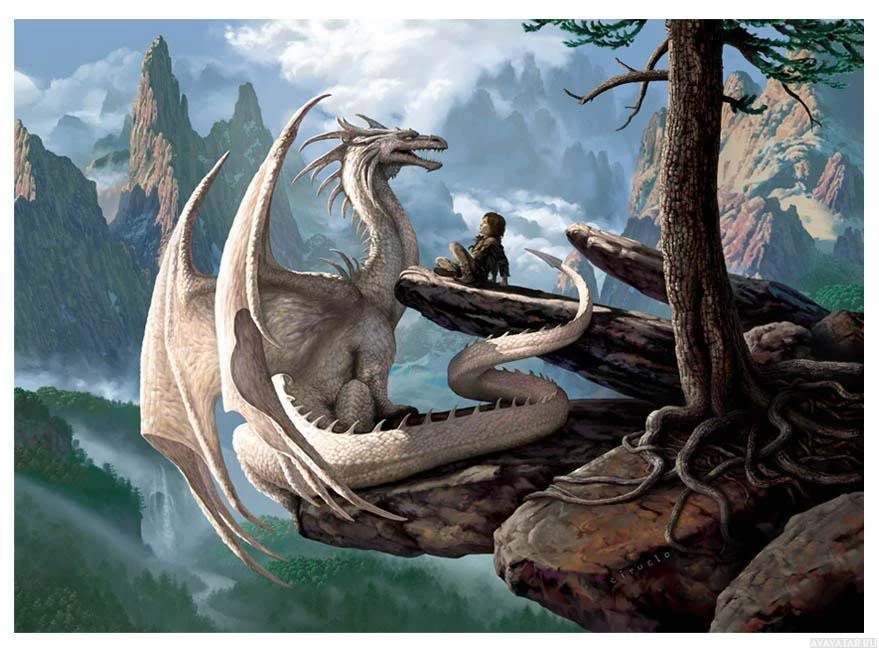 real people. The dragon, with its large wings and serpentine body, is sitting on