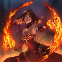 На картинке изображен анимированный персонаж, который, похоже, является Линой из игры Dota 2. Она изображена с огненными элементами, что характерно для ее способностей в игре, таких как использование заклинания, которое включает воспламенение противников пламенем.