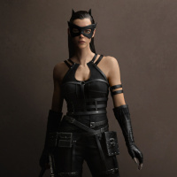signature accessory or item, related to their theme as Cat Noir. The background suggests a studio setting designed for promotional or