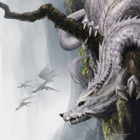 a fantasy world where such creatures exist. The dragon itself has intricate details and features, typical of high-quality fantasy artwork designed to immerse viewers in the story or mythology associated with it.