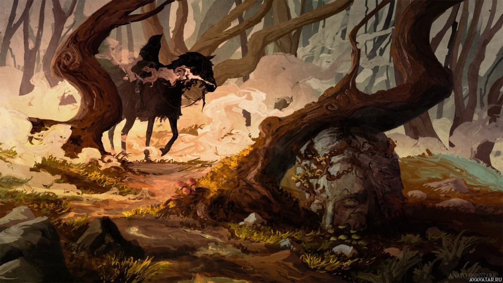 forest setting is consistent with the many wooded regions featured throughout Tolkien's stories. While there's no direct reference to "nazgul," this image does evoke