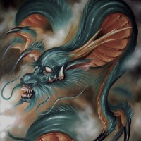The image shows a fantasy-style dragon depicted in a dynamic and fierce manner. It has long,