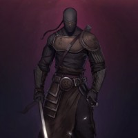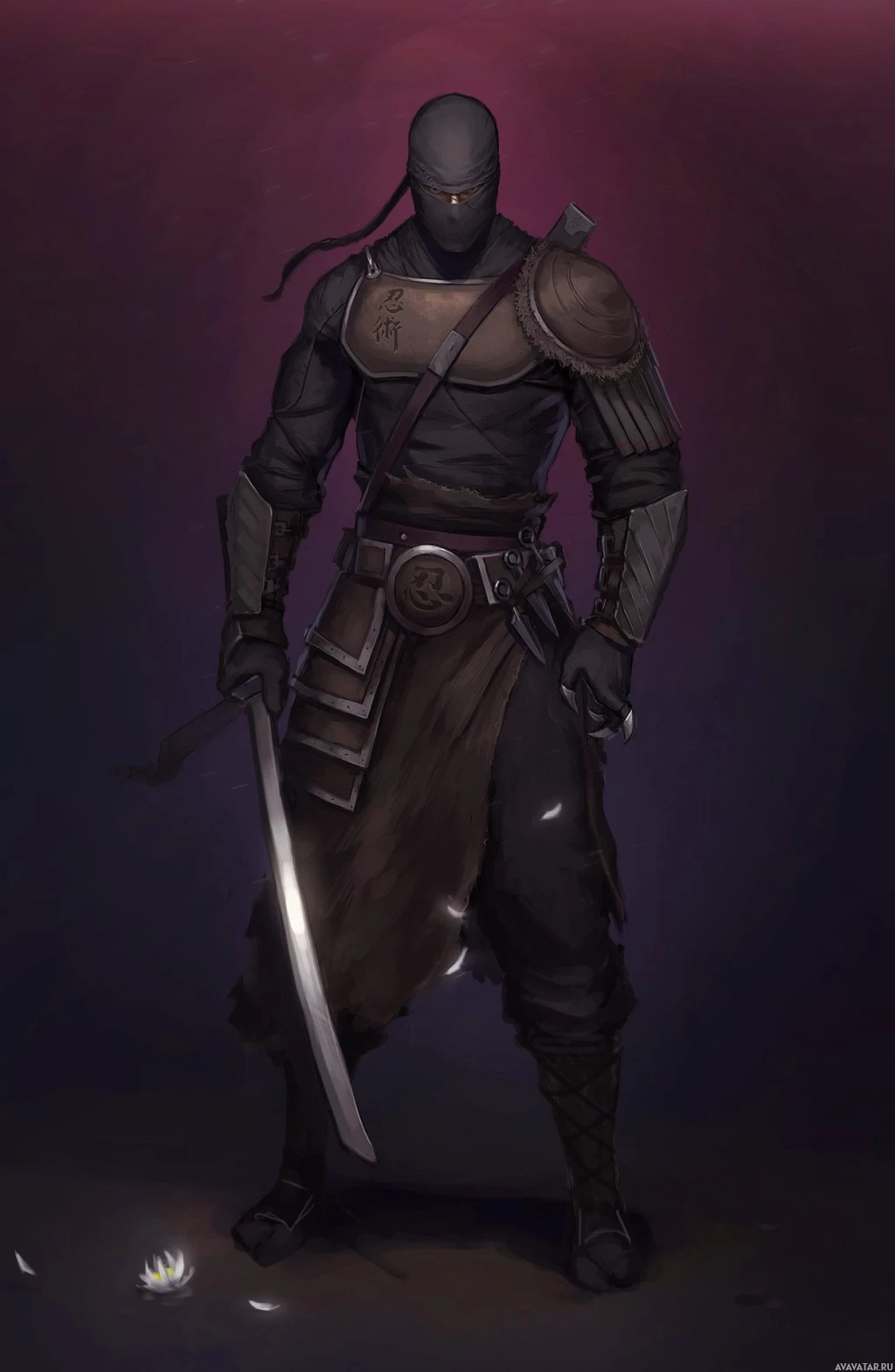 This image depicts a stylized character that appears to be a ninja or a warrior, dressed in