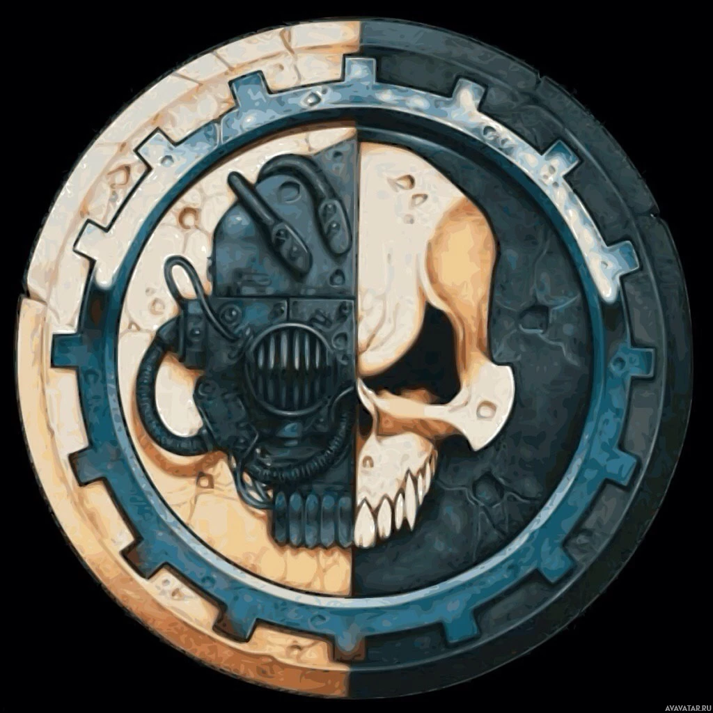 a mechanical helmet or mask, suggesting a theme that might be related to technology or machinery. The overall design has a dark and ominous feel, possibly indicating that this symbol represents something within the context of the game or brand it's associated with.