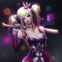 Harley Quinn, a well-known villain from the Batman comics and animated series. This depiction has its own distinct style with