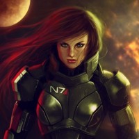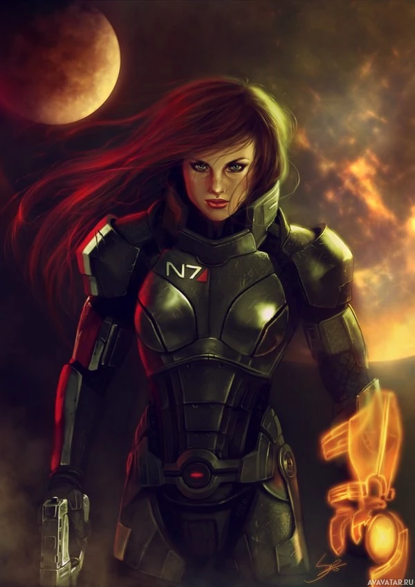 This is an artistic illustration of a character from the Mass Effect video