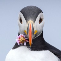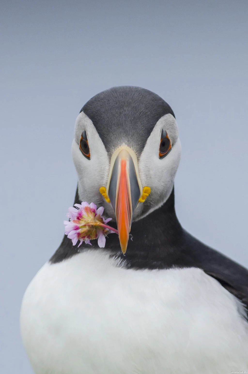 The image shows a puffin, which is a type of bird known for its distinctive black and white plumage. This particular puffin has