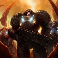 a group of characters from the game Starcraft. They are depicted in a dramatic and