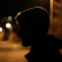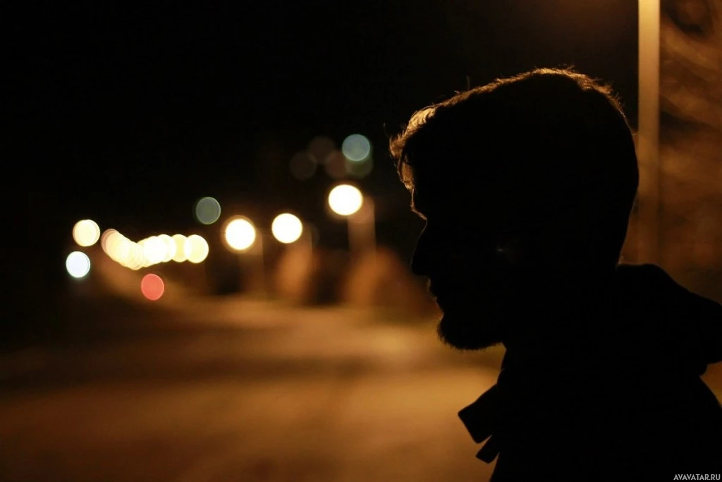 На картинке изображен силуэт человека, стоящего ночью на пустой улице. Человек смотрит в сторону от камеры, давая ощущение одиночества или самоанализа. Сцена освещается искусственными огнями и уличными фонарями, которые отбрасывают тени на окрестности, подчеркивая одинокую фигуру на переднем плане.